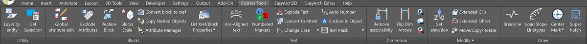 Um auf die Express Tools zuzugreifen, gehen Sie einfach auf die gleichnamige Registerkarte in der Multifunktionsleiste oder auf das Menü 'Express' in der klassischen Symbolleiste.